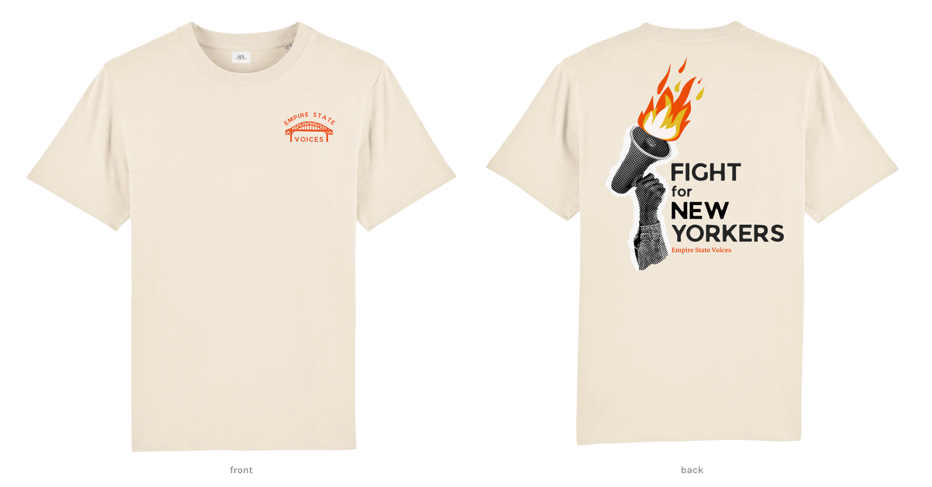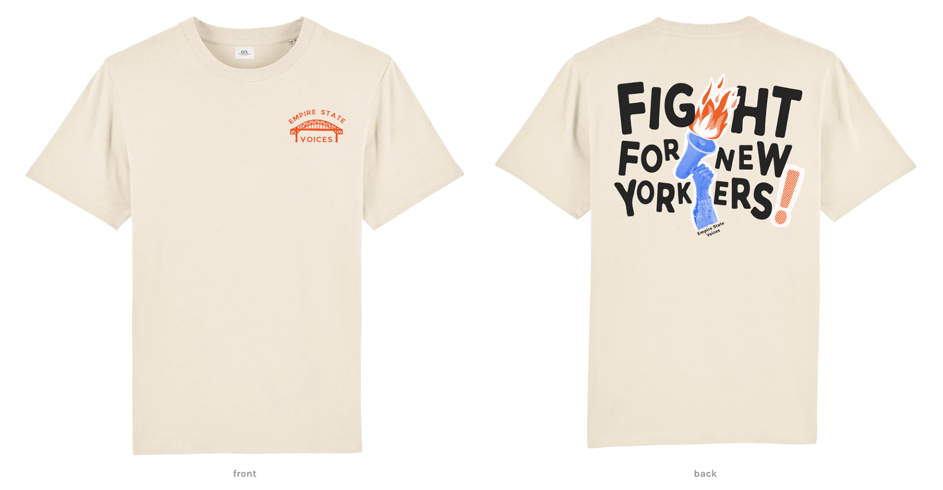Empire State Voices (ESV) is working to hold federal elected officials in New York accountable for failing to deliver for New York working families. I worked with them to create a t-shirt design for their staff, volunteers, and for event promotion.